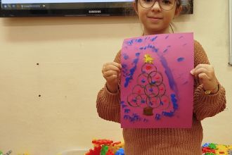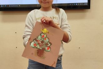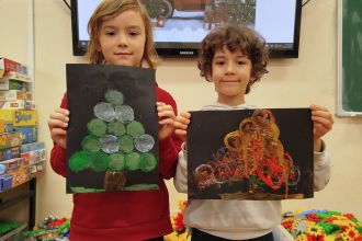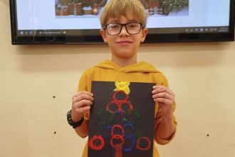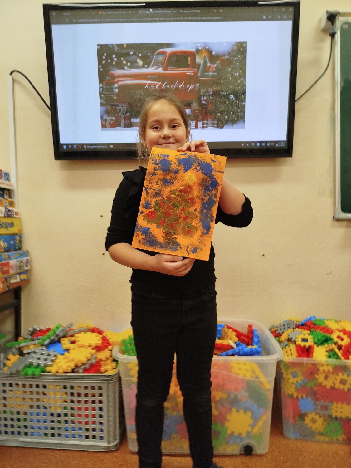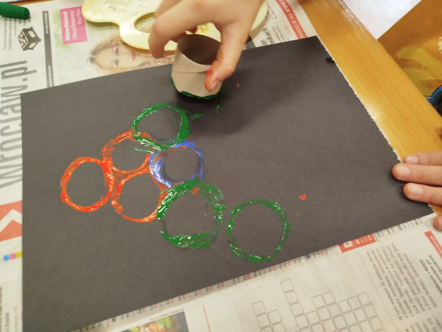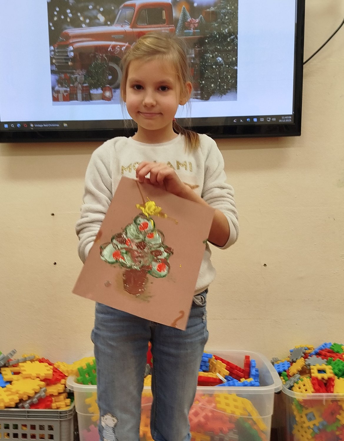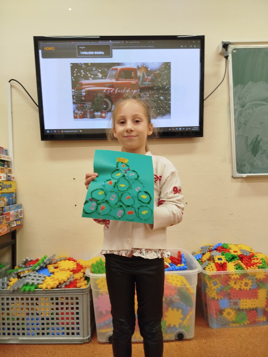 Nasze świetliczaki stworzyły z pomocą papierowych rolek i farb prace, które przedstawiają świąteczne choineczki.
