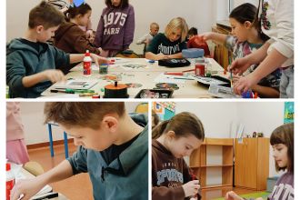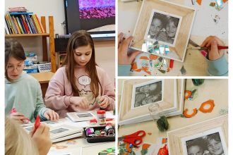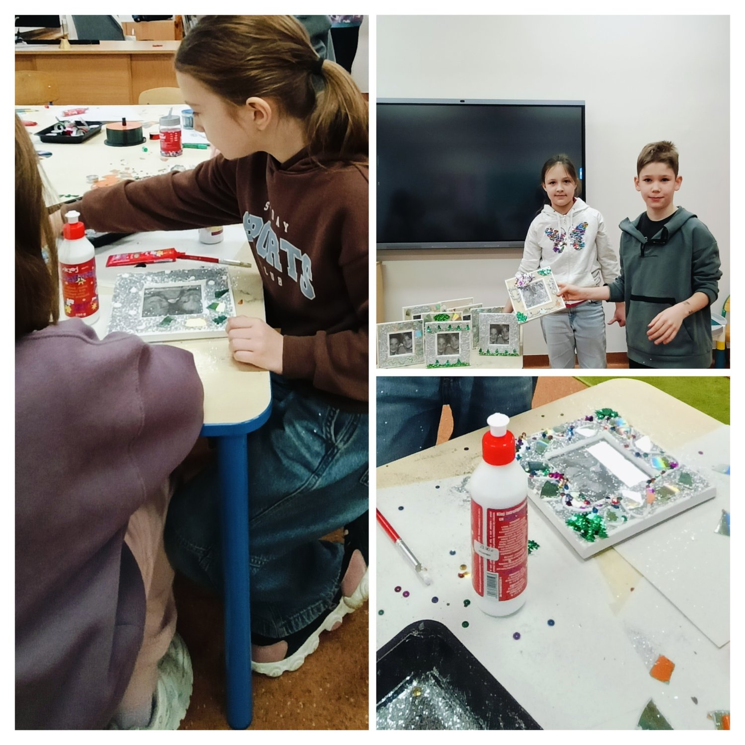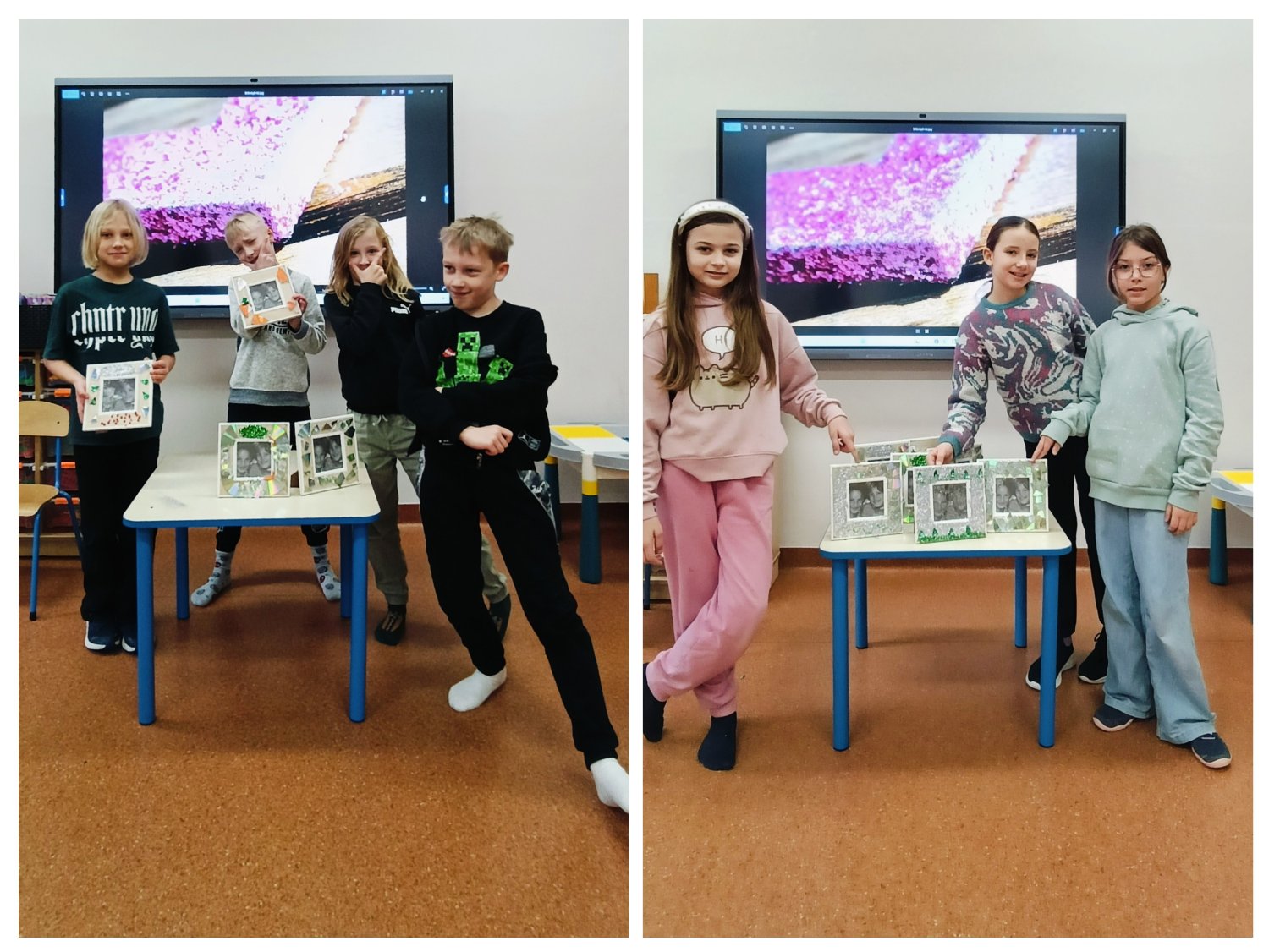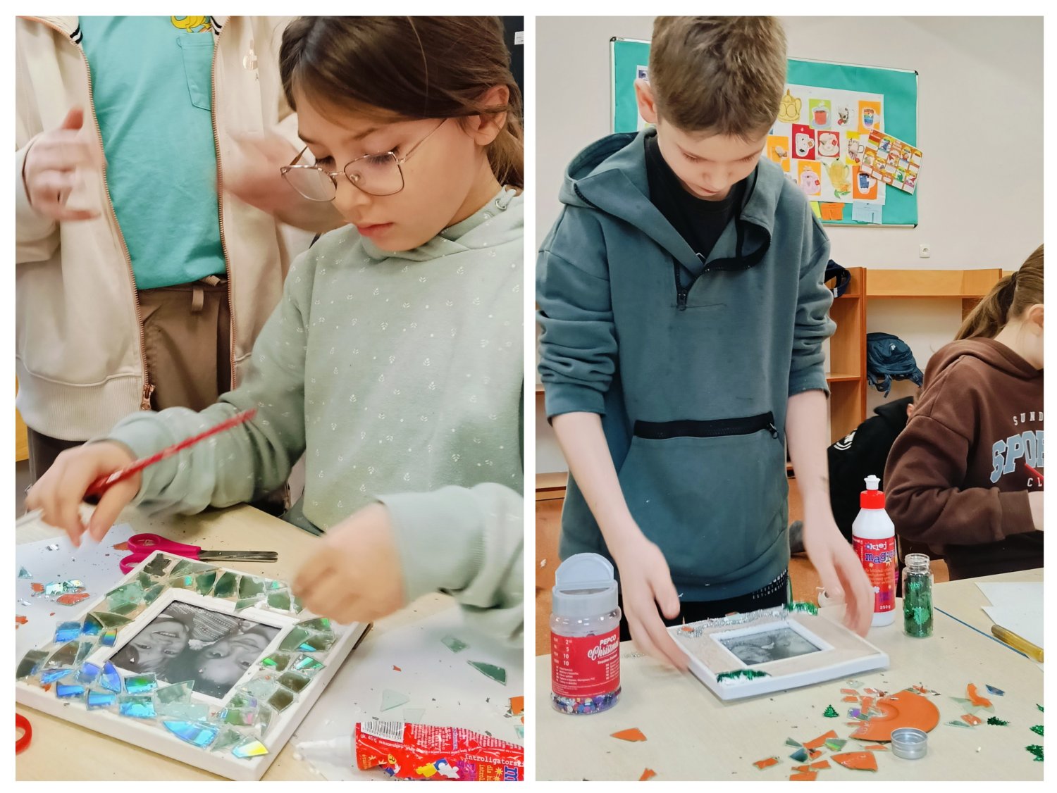 Świetliczaki z zapałem tworzyły swoje prace – jedni precyzyjnie układali kompozycje, inni śmiało sięgali po klej i brokat, zamieniając zwykłe ramki na zdjęcia w designerskie cuda. „Ale to się świeci!”