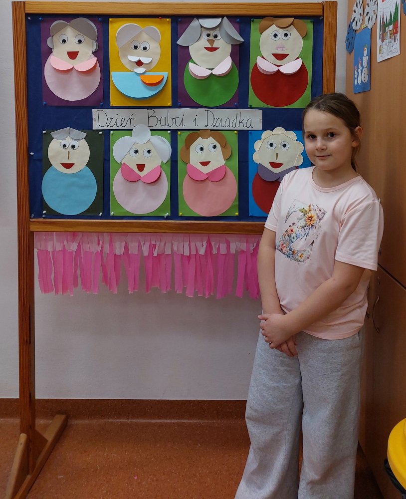 W świetlicy szkolnej odbyły się zajęcia plastyczne poświęcone Dniu Babci i Dziadka. Dzieci z dużym zaangażowaniem tworzyły prace plastyczne z papierowych kółek, z których powstały kolorowe postacie babć i dziadków. Gotowe prace były pięknym wyrazem miłości i wdzięczności dla ukochanych dziadków oraz wspaniałą dekoracją, którą można podziwiać w galerii znajdującej się na korytarzu szkolnym.