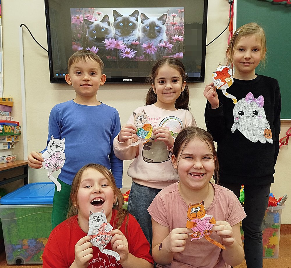 Podczas zajęć dzieci poznały fascynujące ciekawostki o kotach oraz dzieliły się swoimi doświadczeniami i opowieściami o swoich pupilach. Świetliczaki wykonały też miniaturki tego uroczego zwierzaka.