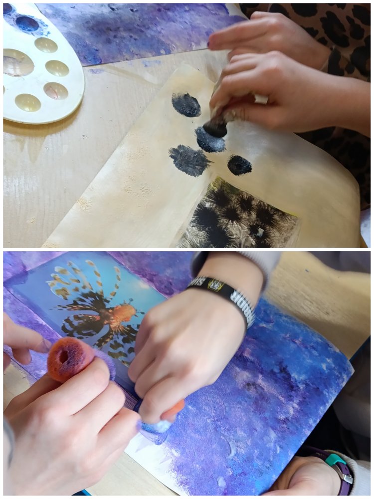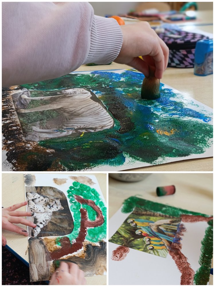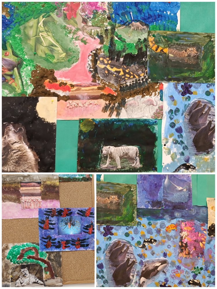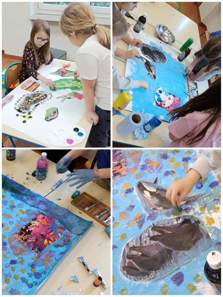 Dziś zmierzyliśmy się z twórczym wyzwaniem połączenia fotografii ze sztuką malarską. Inspiracją były wybrane zdjęcia zwierząt, do których samodzielnie tworzyliśmy barwne, pełne wyobraźni tła farbami akrylowymi.