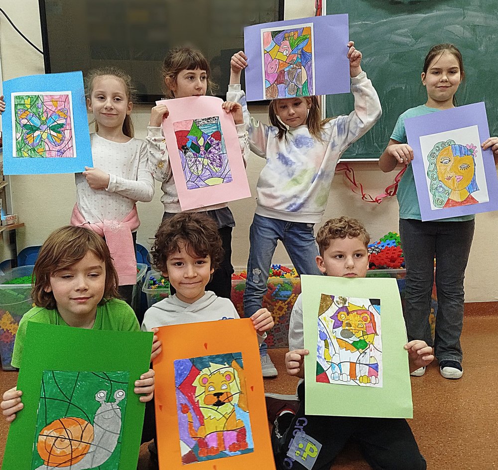 Dzieci, zainspirowane twórczością mistrza, stworzyły pełne wyrazistych kolorów prace w stylu picassowskim.